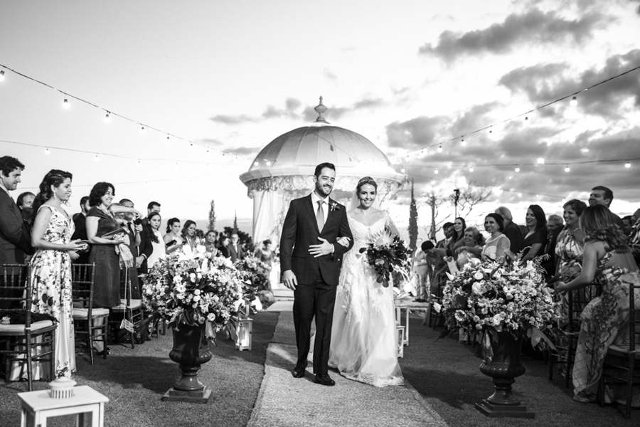 Para fazer jus à fama, o belo céu emoldurava a cidade e - ao longo da celebração - se coloriu de inúmeras cores e tons, tudo para abrilhantar ainda mais o dia do casal.