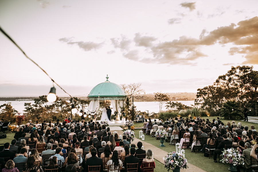 O casamento de Carol e Gabriel aconteceu no Villa Giardini, um local que pode ser considerado o mirante de Brasília, pois de lá se tem uma vista privilegiada da capital federal.