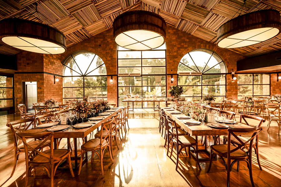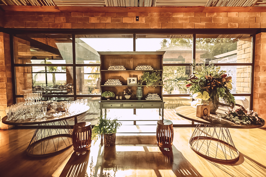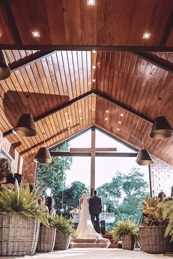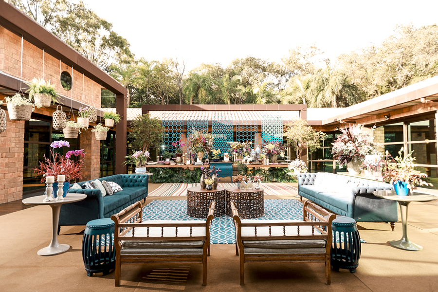 O local escolhido pelos noivos foi o Espaço da Lenda, uma casa de festas que se integra à natureza de uma forma harmônica, operando de maneira sustentável, sem no entanto perder a beleza. Muito pelo contrário: é impossível conhecer o local sem se encantar!