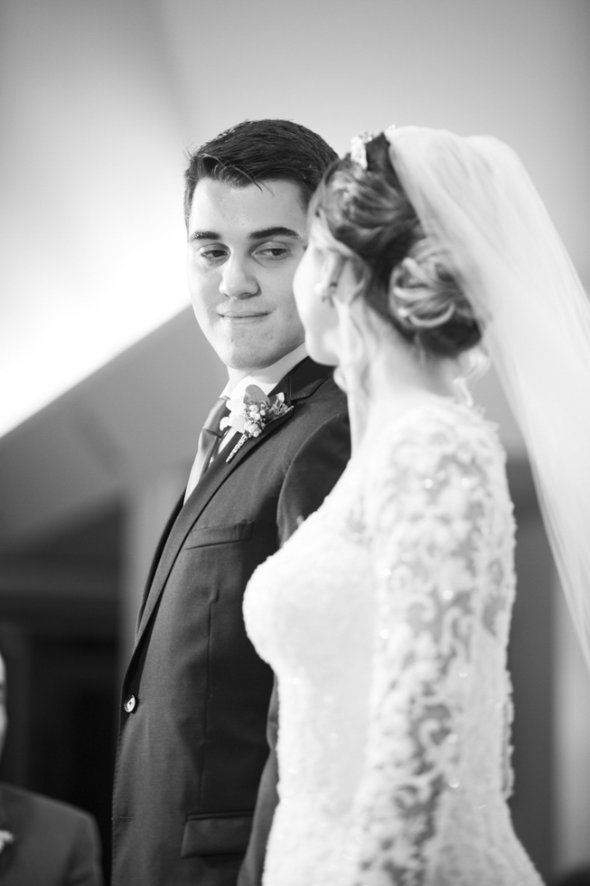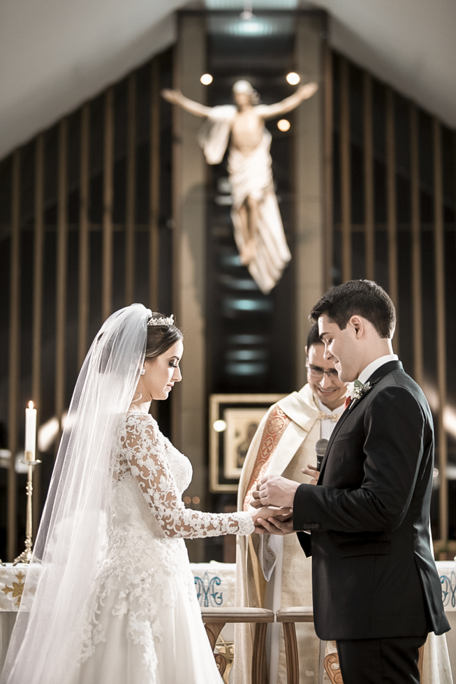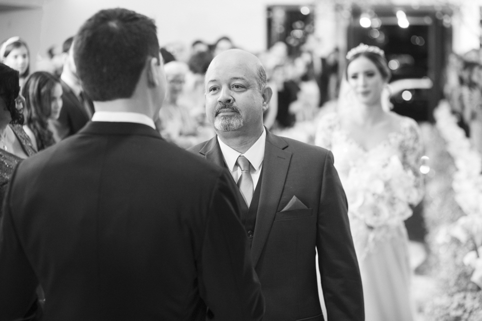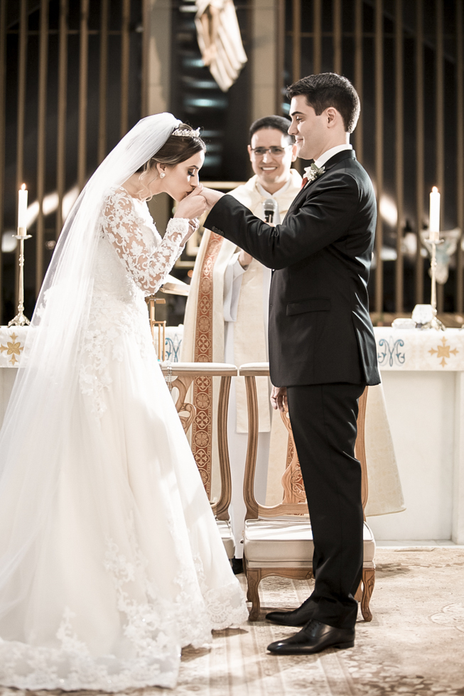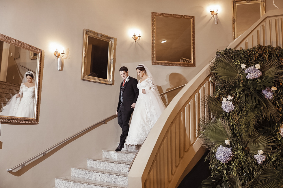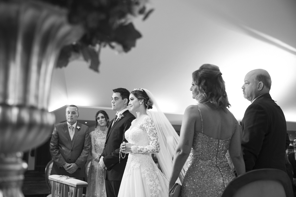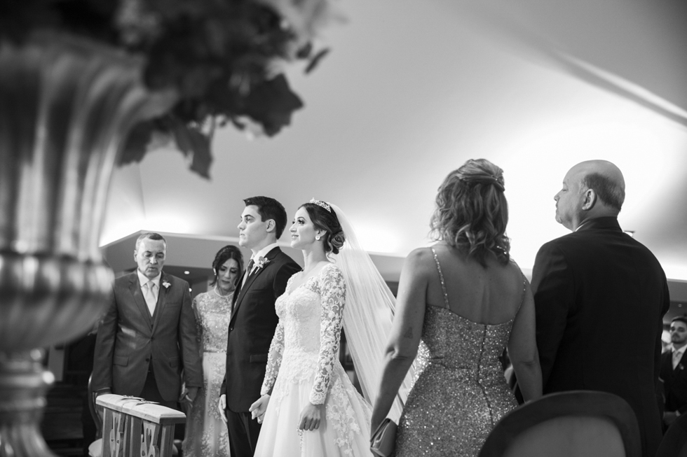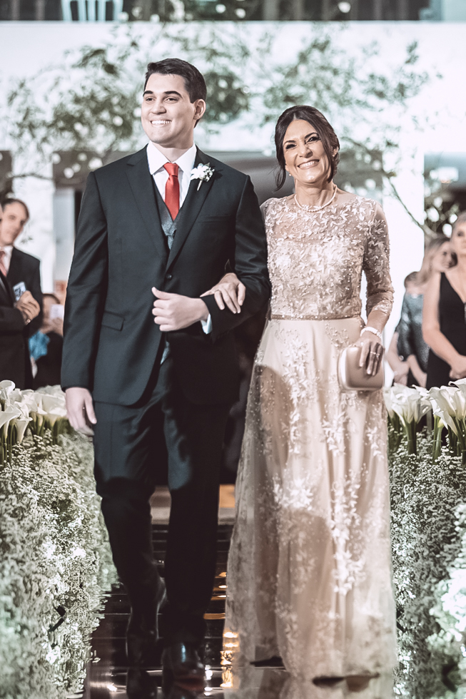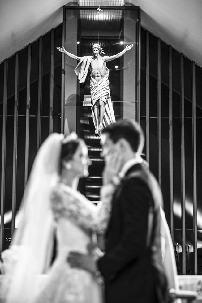 Para a cerimônia, o casal escolheu a igreja queridinha das noivas - a Nossa Senhora do Perpétuo Socorro - que estava lindamente decorada, com direito a tapete de espelhos e arranjos florais que harmonizavam muito bem com a peculiar nave.