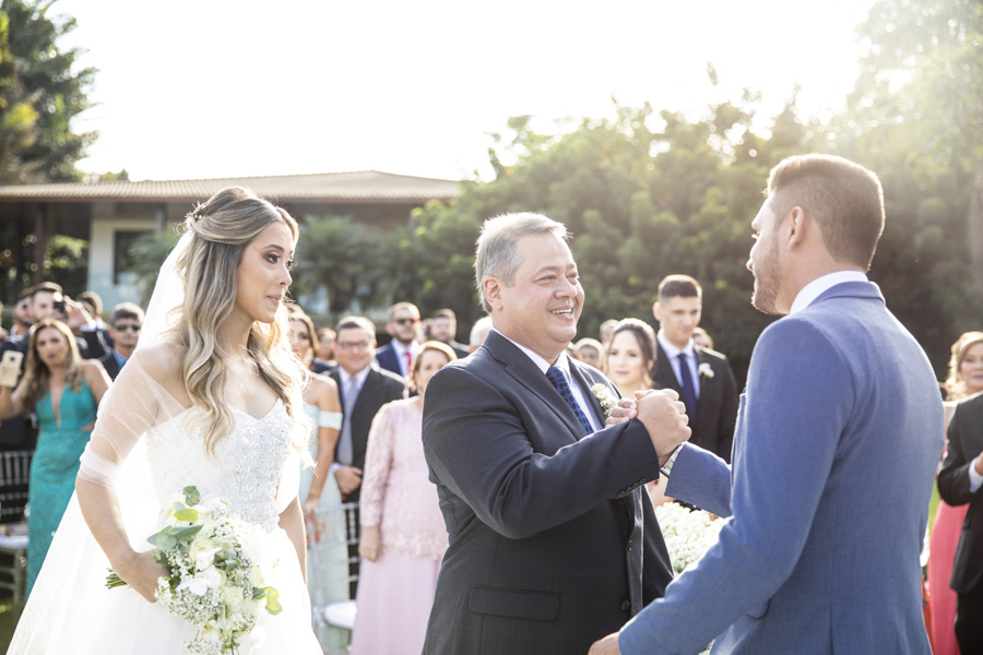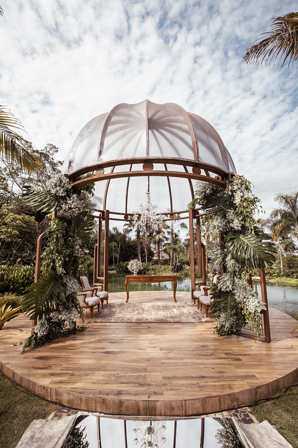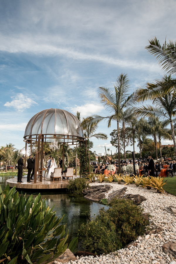 Arissa e Matheus se casaram em uma linda cerimônia externa nos jardins do Contemporâneo Park. O dia estava ensolarado, a grama reluzia um verde quase florescente e o lago lembrava as águas do Caribe de tão cristalino.
