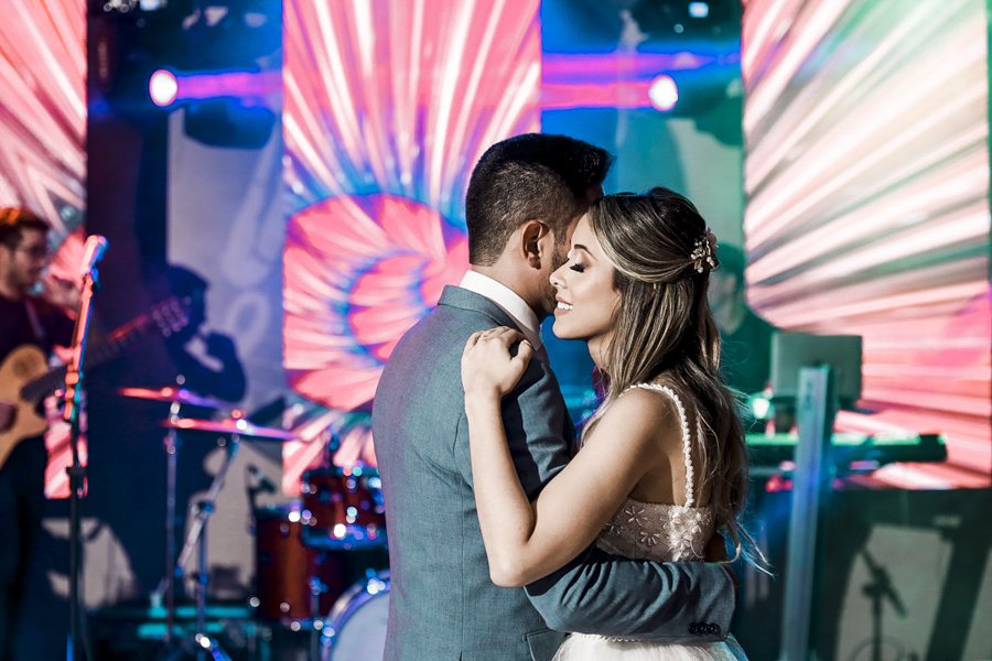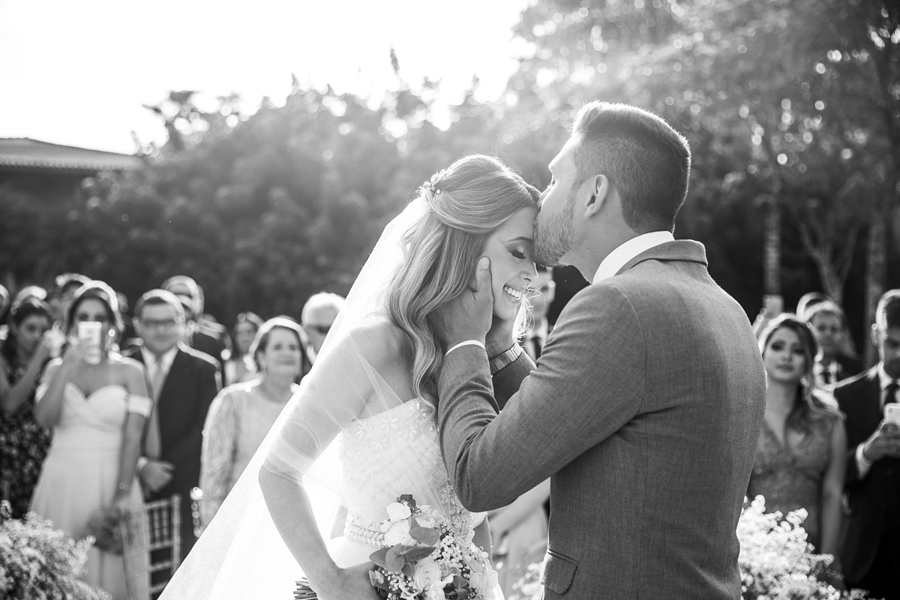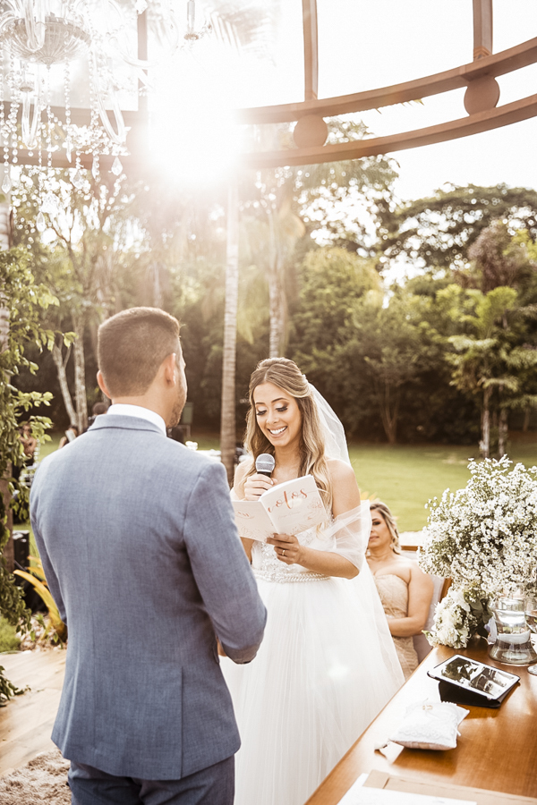 No altar, o casal arrancou suspiros dos convidados pela beleza de seus votos que relembravam a história daquele amor de escola que evoluiu para casamento
