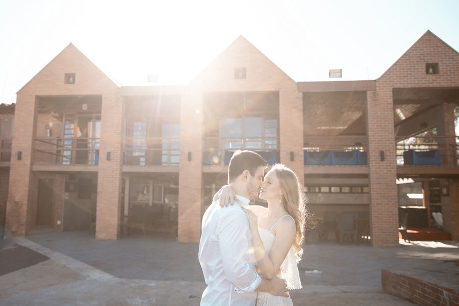 Clarissa e Bernardo escolheram o Iate Clube como cenário para suas fotos de noivos, pois o local era muito significativo para eles.